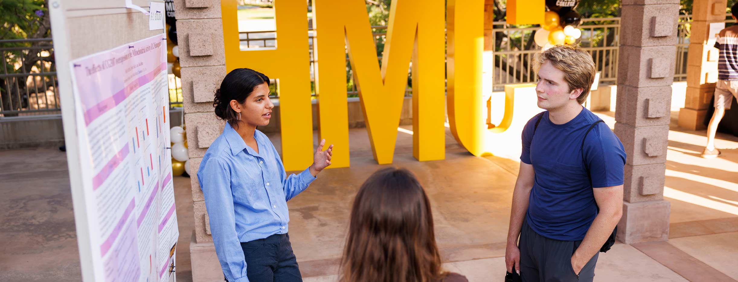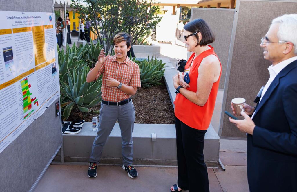 This year’s Poster Research and Scholarship Celebration, held in conjunction with the College’s 70th Anniversary Symposium, brought the campus community together for an outdoor showcase of student research. Nearly 200 students collaborated with faculty mentors across all HMC departments and off-campus, exploring new ideas and discoveries throughout the summer. Attendees circulated among the posters, engaging presenters in lively conversation and offering encouragement. Here’s a selection of summer research projects.